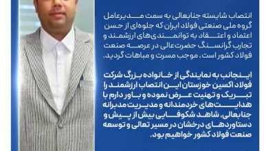 پیام تبریک مدیرعامل شرکت فولاد اکسین خوزستان به مناسبت انتصاب مدیرعامل جدید گروه ملی صنعتی فولاد ایران