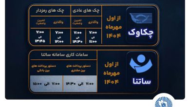 ساعت کاری سامانههای ساتنا و چکاوک در بانک تجارت بر اساس بخشنامه بانک مرکزی جمهوری اسلامی ایران از اول مهرماه 1404 تا اطلاع ثانوی تغییر یافت.