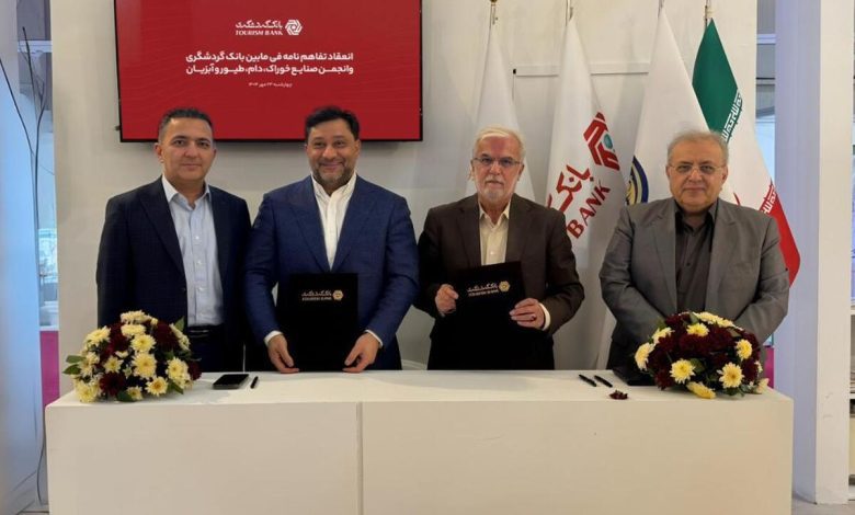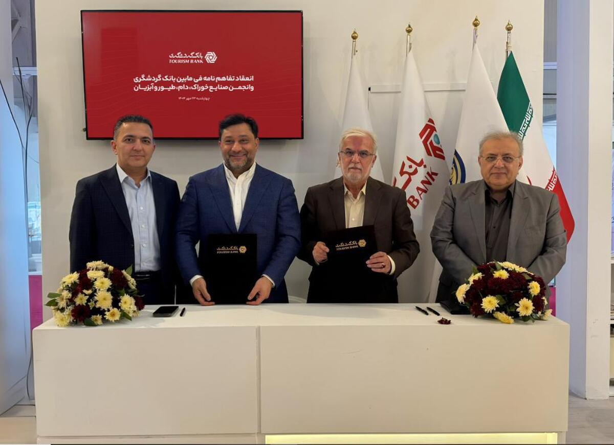 در مراسمی با حضور حاج علی، رئیس هیأتمدیره بانک گردشگری، شهرابی، مدیرعامل هلدینگ بازرگانی گردشگری دانا و قدیری، رئیس انجمن صنایع خوراک دام، طیور و آبزیان ایران، تفاهمنامه همکاری میان بانک گردشگری و انجمن صنایع خوراک دام، طیور و آبزیان ایران به امضا رسید.
