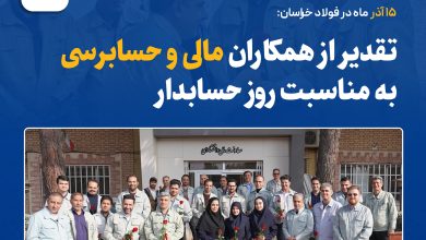 به مناسبت ۱۵ آذر، روز حسابدار، مدیران روابطعمومی و خدمات و امور رفاهی فولاد خراسان و جمعی از همکاران روابط عمومی با حضور در معاونت مالی و اقتصادی، مدیریت حسابرسی داخلی و واحدهای حسابداری حقوق و دستمزدِ پرسنل امانی و پیمانی از زحمات همکاران…